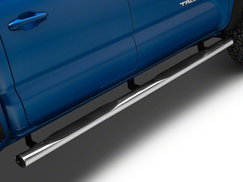 Application. These RedRock 4-Inch Oval Straight End Side Step Bars; Stainless Steel are designed to fit 2005-2023 Toyota Tacoma Double Cab models. Driver and passenger side are included.